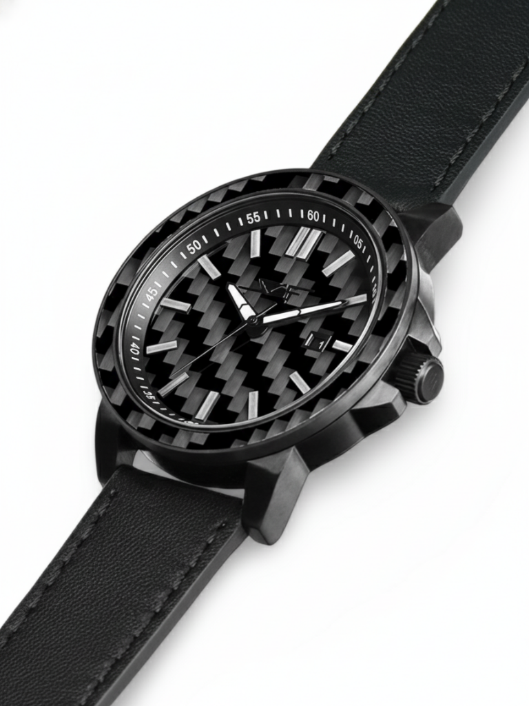 The SCF Carbon Fiber Watch Fuses A Precision Quartz Movement With A Genuine Carbon Fiber Dial, Creating A Distinctive Statement Of High-Performance Elegance.