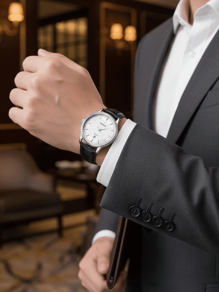 A Refined Accessory For The Discerning Individual, Adding A Touch Of Luster To Any Business Casual Ensemble.