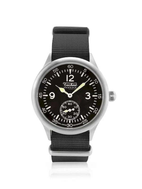 • Every Techné timepiece reflects our commitment to superior, reliable craftsmanship. The Merlin’s corrosion-resistant 316L steel case guarantees lasting durability. Its robust construction ensures it withstands daily use. The ballistic nylon strap is designed for maximum resilience and minimal maintenance.