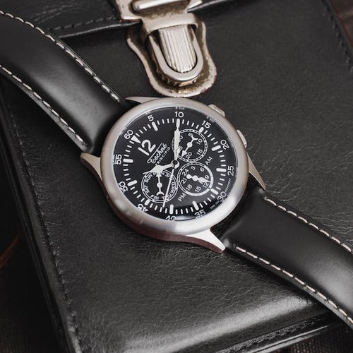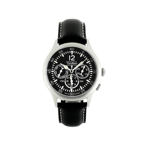 39.5mm navigation watch with strap in black tuscan leather