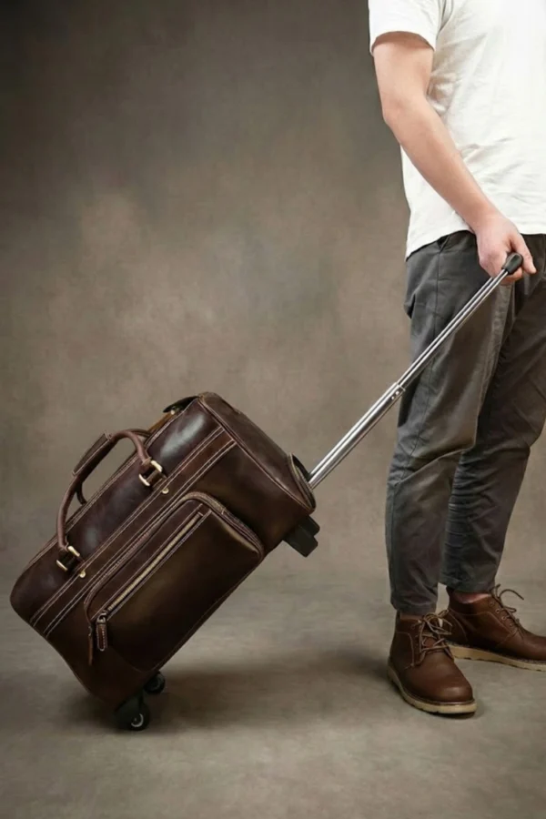 The Vienna offers discerning travelers effortless mobility without sacrificing elegance. With a robust leather silhouette that commands attention and radiates timeless sophistication, it ensures a seamless transition from the lounge to the cabin. Because it’s not just about where you are going, but how you arrive. Impeccable taste, now on wheels.